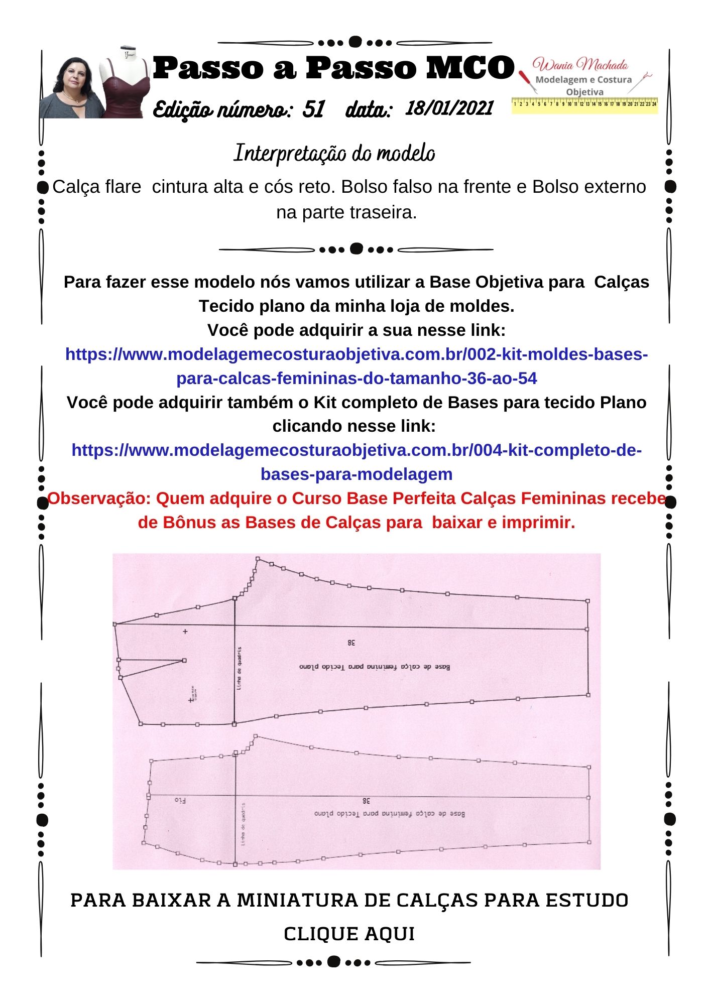 Então vem comigo que nessas próximas semanas teremos nossa série “Especial de Calças Femininas” com aulas de modelagem, corte, costura e o Passo a Passo MCO de cada modelo pra você Baixar.