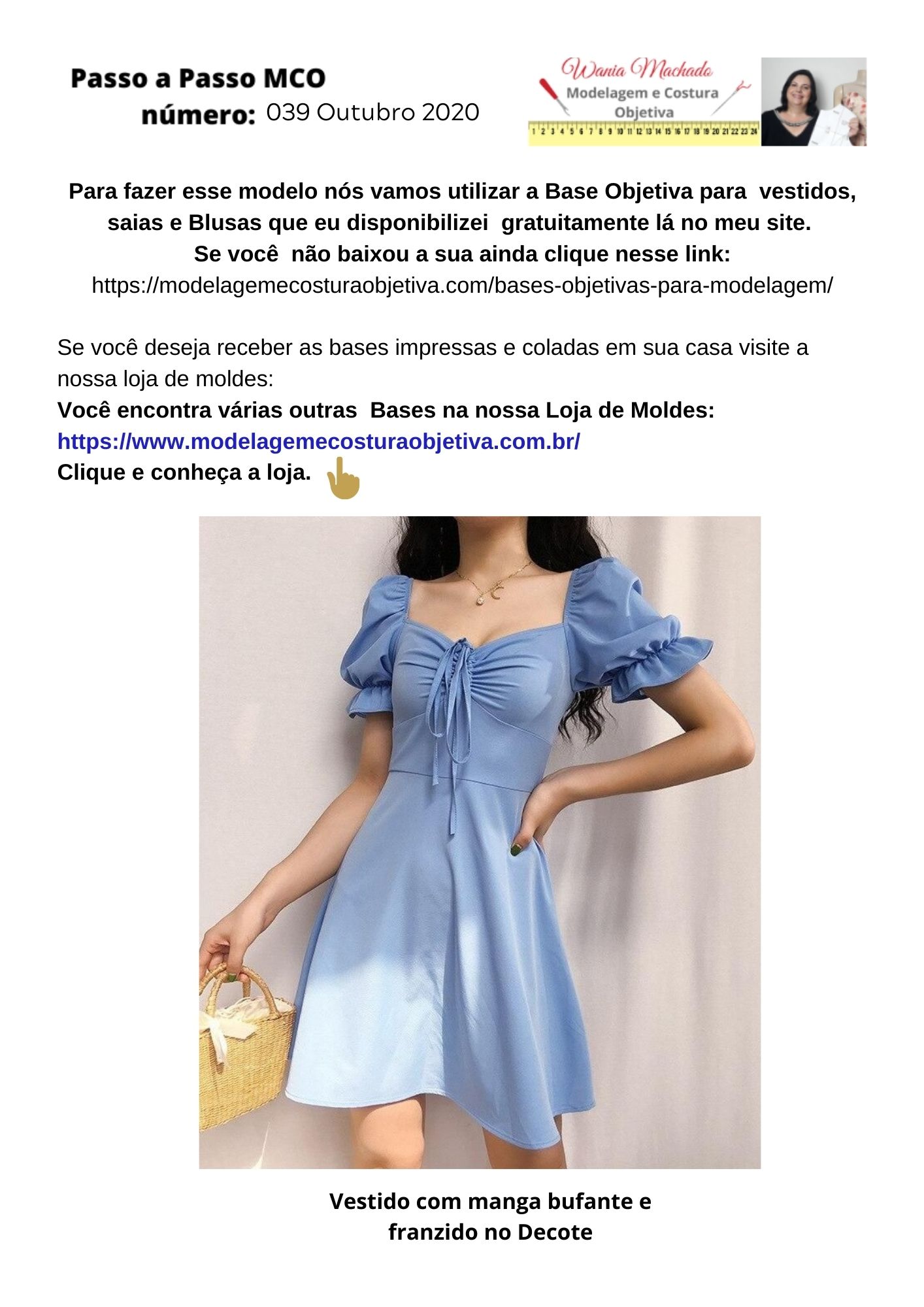 Nosso modelo de hoje é esse lindo vestido com manga bufante e franzido no decote.