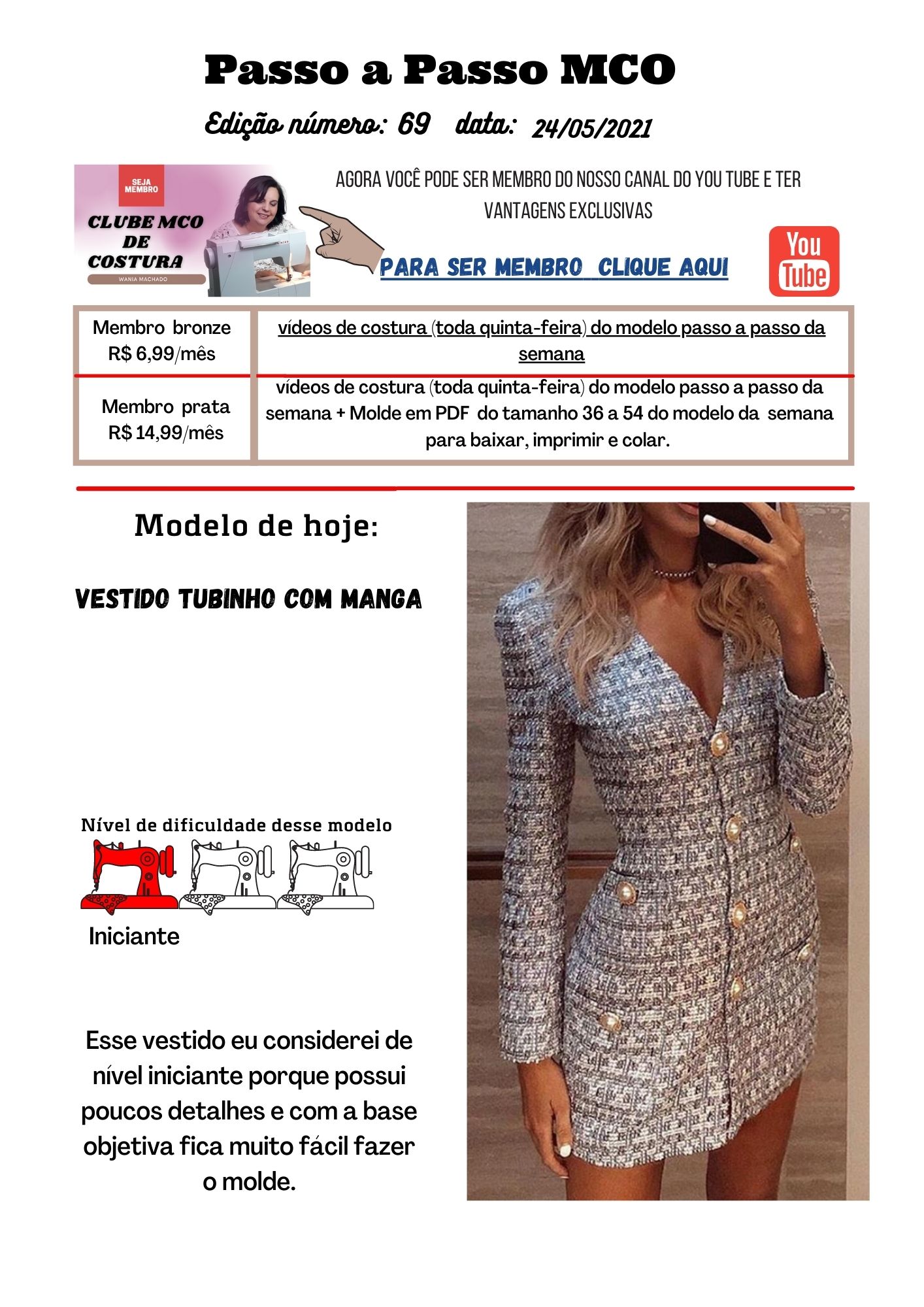 Inclusive a aula de costura e o molde desse vestido você só encontra no clube.